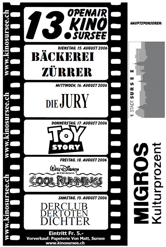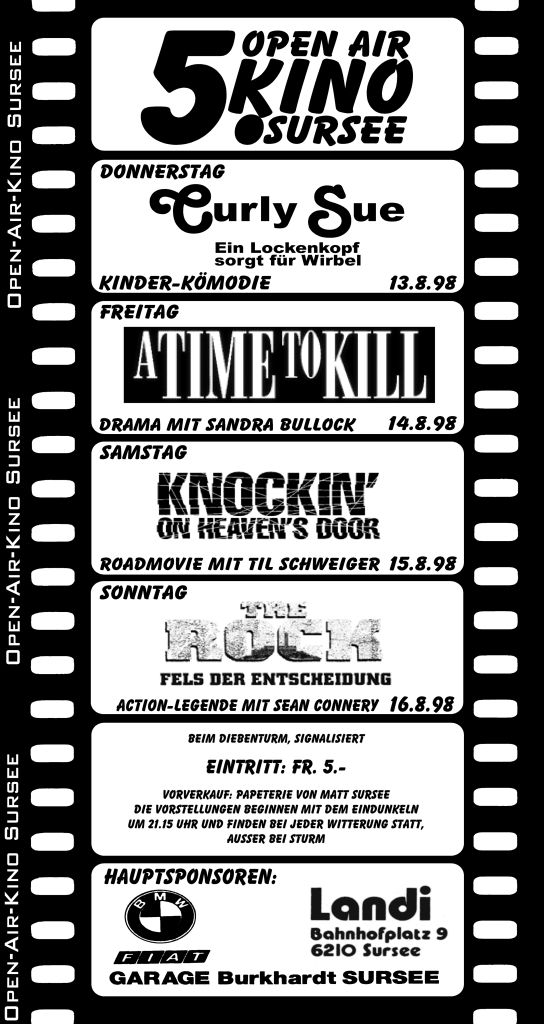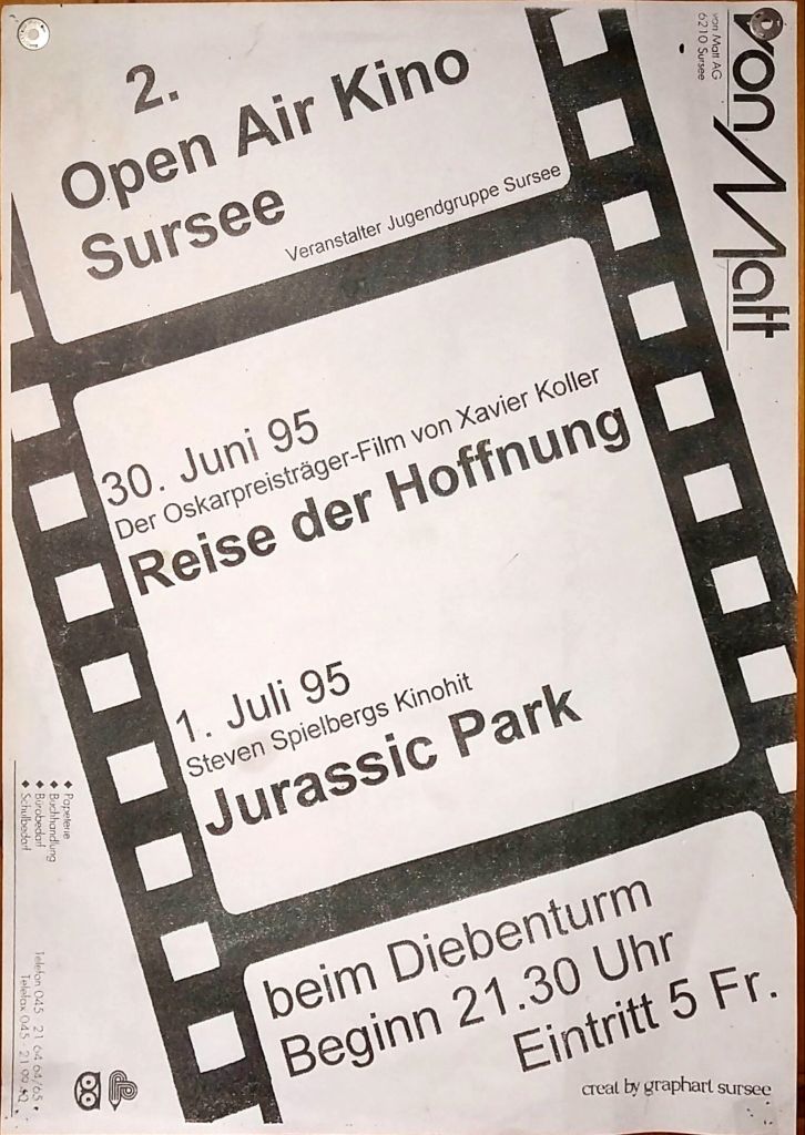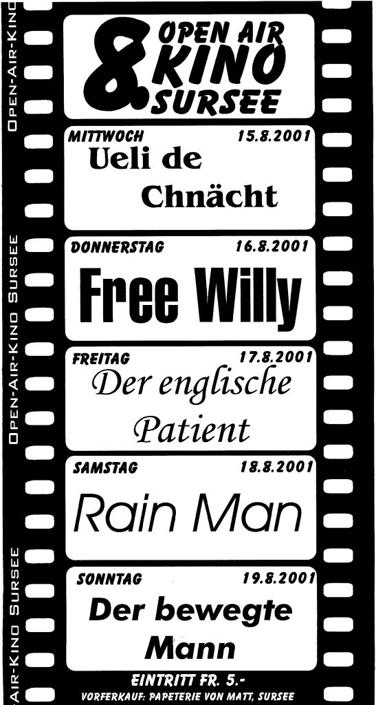 Von Jurassic Park im Jahr 1995, der Name der Rose in 2000, Ueli de Chnächt in 2001, der Goalie bin ig im Jahr 2015… und und und. Hier sind unsere alten Plakate zu finden.