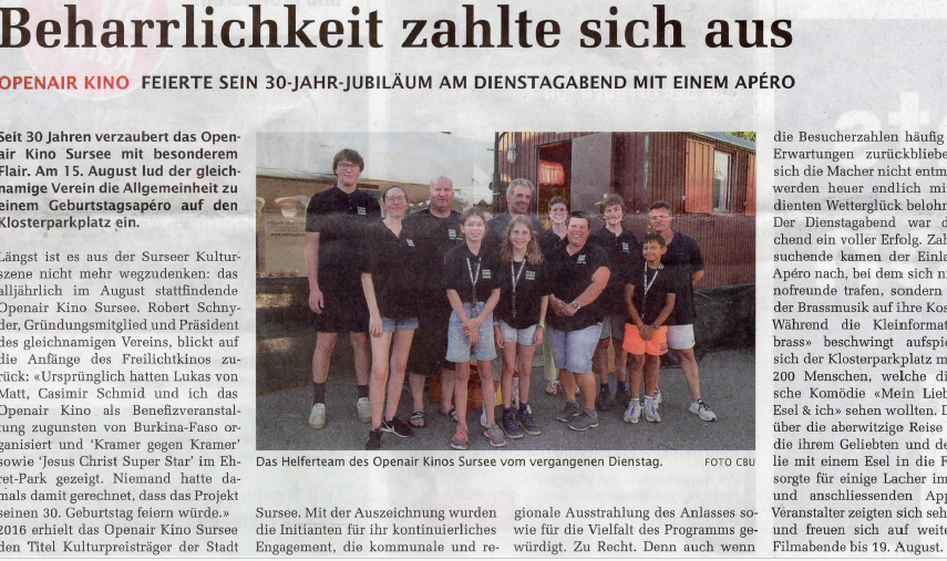 2023 feiert das Openair Kino Sursee Jubiläum! Kaum zu glauben, dass unser Kino schon 30 Jahre auf dem Buckel hat.